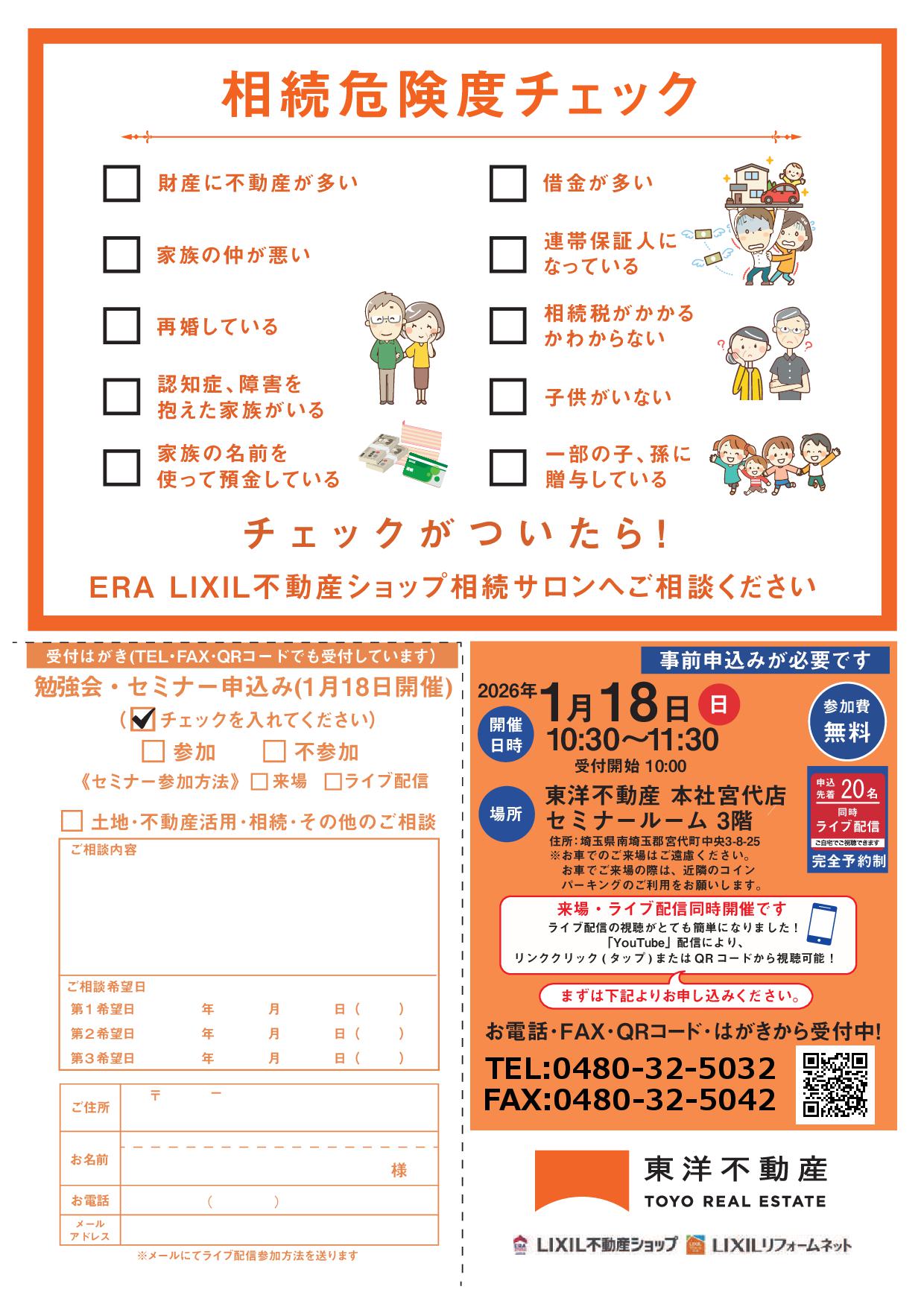 件名に「1/18オーナーセミナーWEB閲覧希望」と記載しお申込みをお願い致します。(お電話にて受付も承っております。0480-32-5032)